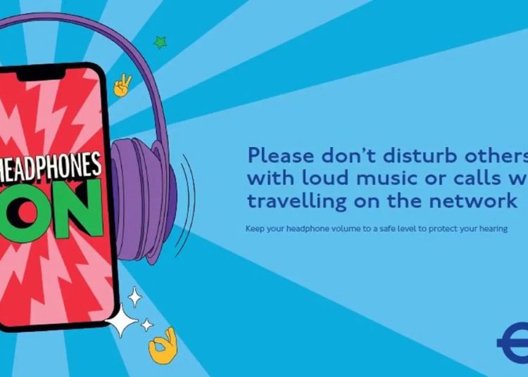 伦敦交通局(TfL)最新发布的宣传海报倡议乘客:使用设备扬声器播放内容时请顾及他人,建议佩戴耳机。此前一项针对千名乘客的调研显示,70%的受访者认为免提通话和公放音乐已构成公共干扰。