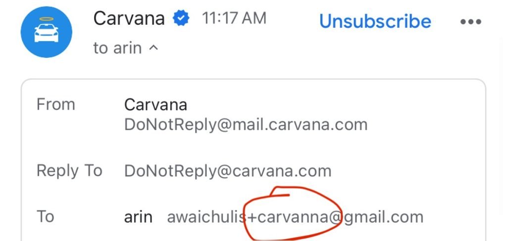 来自这些服务的所有邮件仍会像往常一样进入你的收件箱,但现在会带有我们指定的+别名。如果你收到来自其他公司的邮件,其中引用了“你的邮箱地址+carvanna@gmail.com”这个地址,你就会知道他们是从哪里得到它的。