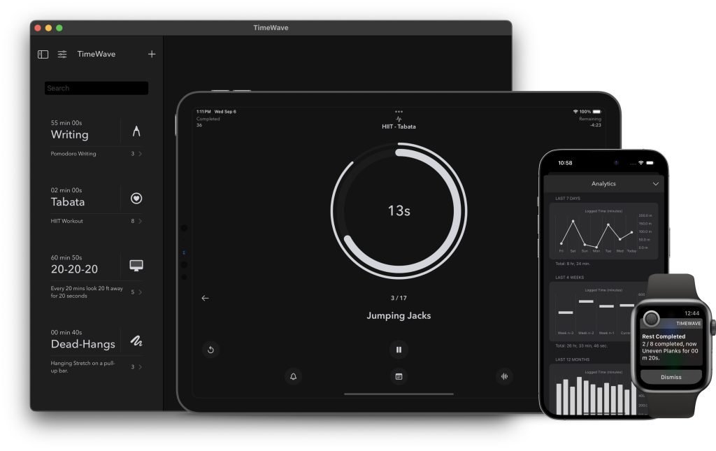 TimeWave 是一款功能全面的计时器应用,其能力远超苹果自带的时钟应用。简而言之,它让你可以创建流畅的计时器——允许你为连续任务设置背靠背的计时器。这让你能轻松专注于手头的工作。