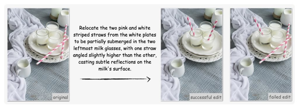 最终形成的Pico-Banana-400K数据集包含:单次编辑图像(单一指令)、多次编辑序列(多重迭代指令),以及成功与失败结果的对比配对(让模型也能识别不良输出)。
