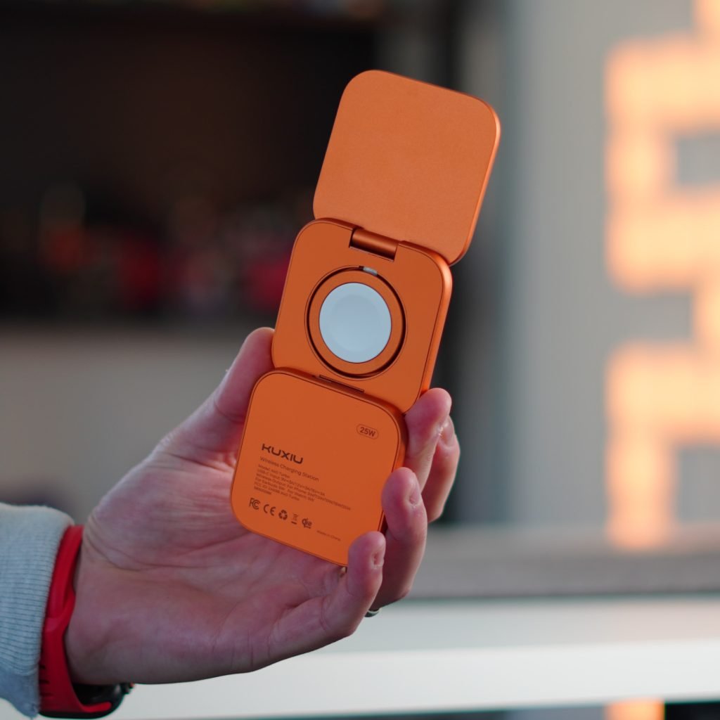 我使用iPhone 17 Pro对这款新橙色版本进行了数日测试,结果与我之前用16 Pro测试的数据完全一致。电量从10%充至80%仍然只需不到50分钟,并且充电器保持凉爽。磁吸对齐完美,25W的充电速度让人感觉无线充电终于在日常使用中变得实用。这款充电器也非常轻薄紧凑。您可以将其折叠成圆饼状,或展开为支架模式。您也可以完全展开,平放在桌面上。它的多功能性和精良做工令人惊叹,尤其是铰链部分!