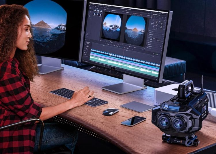 去年推出的URSA Cine Immersive摄像机被称作”全球首款专为拍摄Apple沉浸式视频设计的商用摄像系统”。