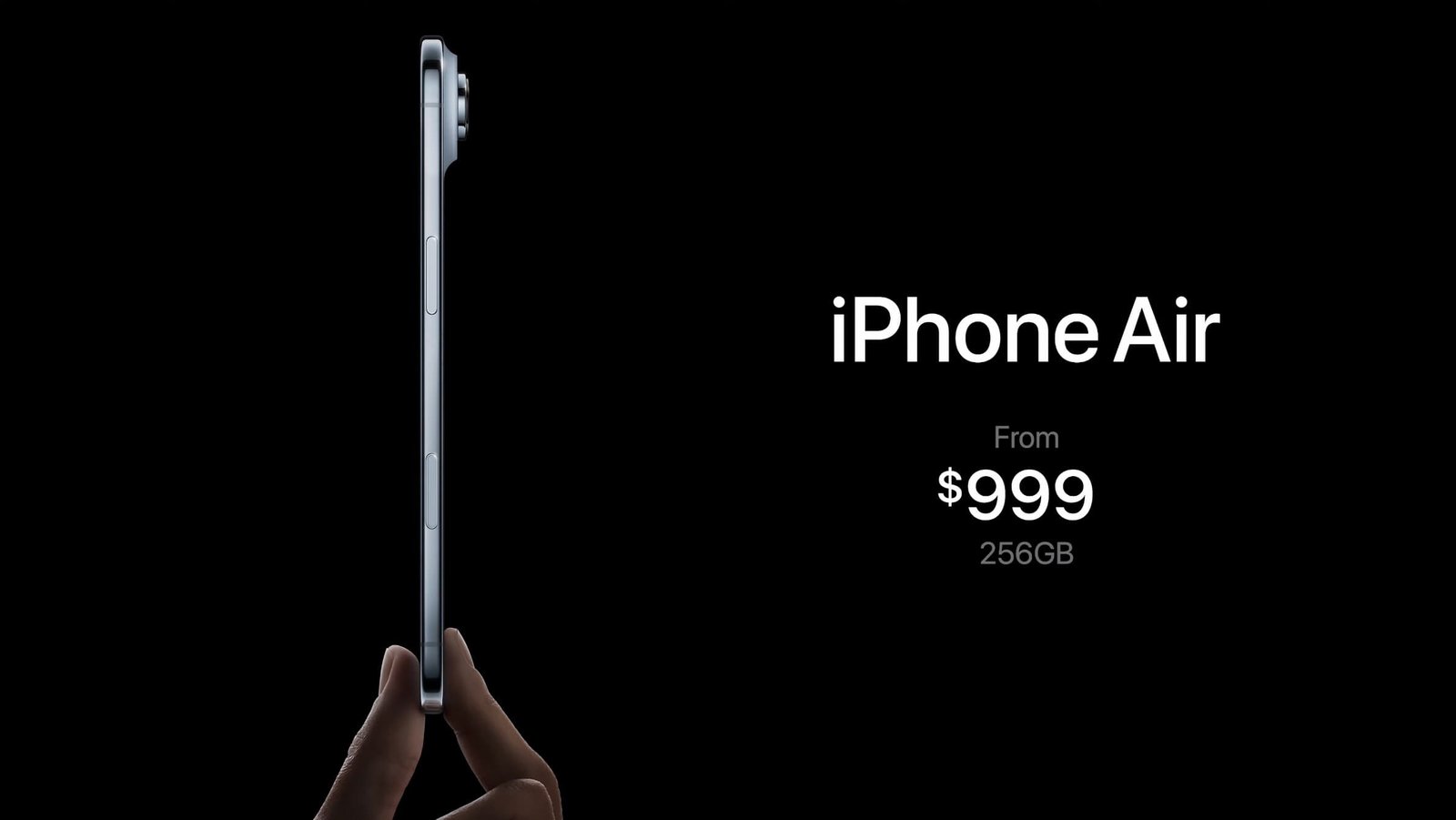 iPhone Air提供天蓝、淡金、云白、太空黑四款纯色,相比iPhone 16 Plus的群青、水鸭蓝、粉、白、黑等配色更为简约。