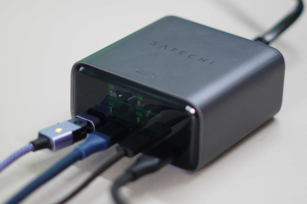 去年充电器最火的还是内置伸缩线,一夜之间好像所有产品都带上了这个设计。现在充电市场又冒出了新趋势:带诊断显示屏的充电器。我发现越来越多款式加了小小的 LED 或 LCD 屏,能显示充电速度之类的基本信息。我这个技术宅看到这个功能简直爱死了,再也不用额外找工具去验证充电速度宣称,实在太方便了。最近加入这个潮流的是 Satechi 新推出的 ChargeView 140W 桌面充电器。它除了满足高端桌面充电器的常规需求——支持四个 USB-C 设备同时充电、带显示屏之外,还提供了远超单纯速度显示的功能。来一起看看它到底怎么样!