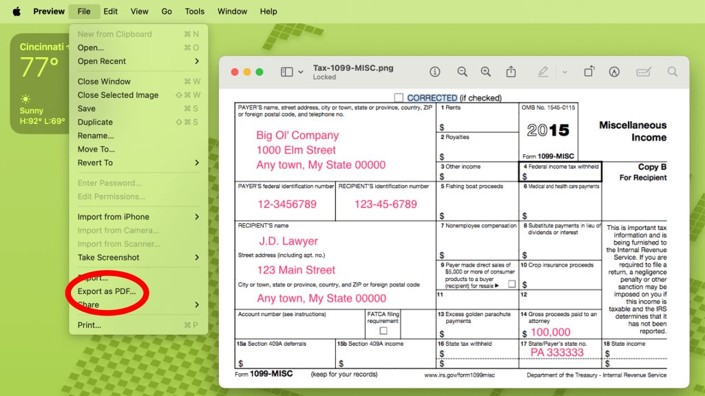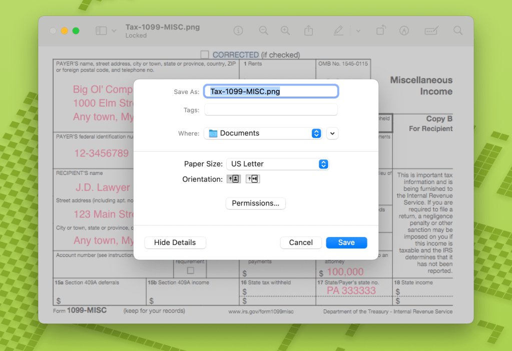 以下截图包含重要税务信息,用于估算季度税款。但若未加密存放在桌面,即使预览图标也可能暴露敏感内容。