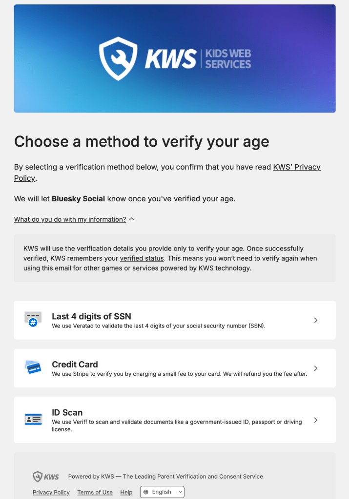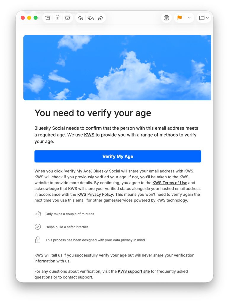 Bluesky 称年龄验证流程“设计时考虑了你的数据隐私”,并且它无法访问你与 KWS 分享的验证信息。