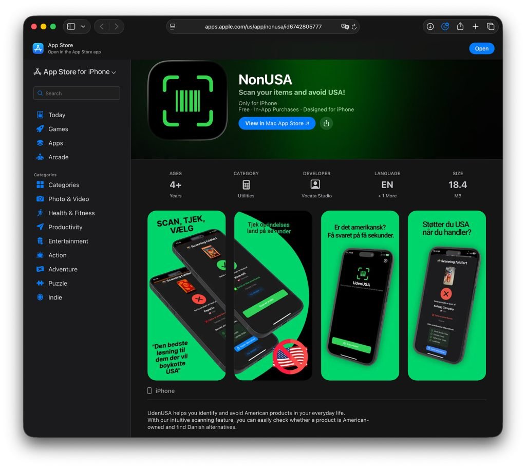 近几天,两款名为NonUSA(UdenUSA)和Made O’Meter的应用在丹麦App Store(同时服务格陵兰用户)下载量激增。
