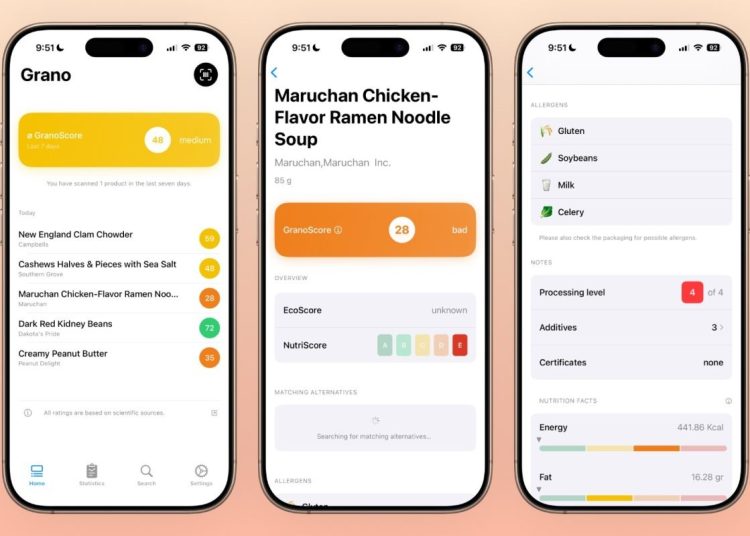 Grano 是一款非常适合想要控制热量摄入的人群使用的实用工具。它可以扫描条形码、为你生成个性化评分,并按膳食类别分解食品的实际成分。此外,它还会提供详细的成分分析,解释潜在的添加剂、过敏原以及加工程度。
