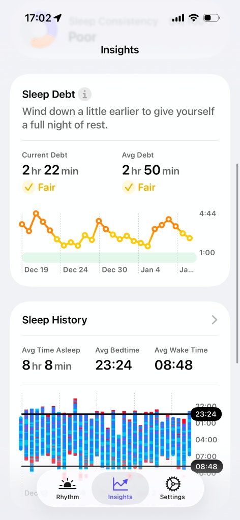 Peaks 还提供大量实用的睡眠洞察数据,让你轻松追踪睡眠债、恢复情况以及睡眠质量和规律性。