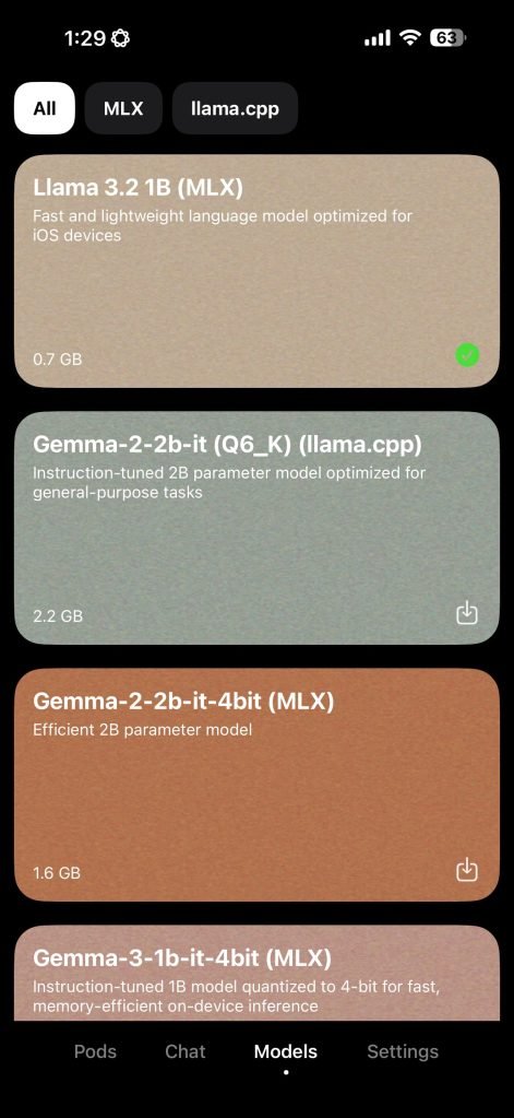 首先,该应用支持 MLX 和 Llama 模型。这让你在选择模型时拥有极大的灵活性,AnywAIr 支持所有知名模型,包括 Qwen 2.5、Gemma 3、Llama 3.2 等。