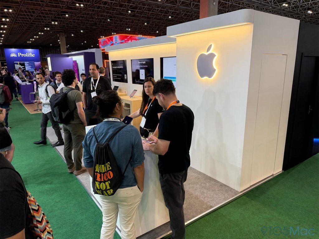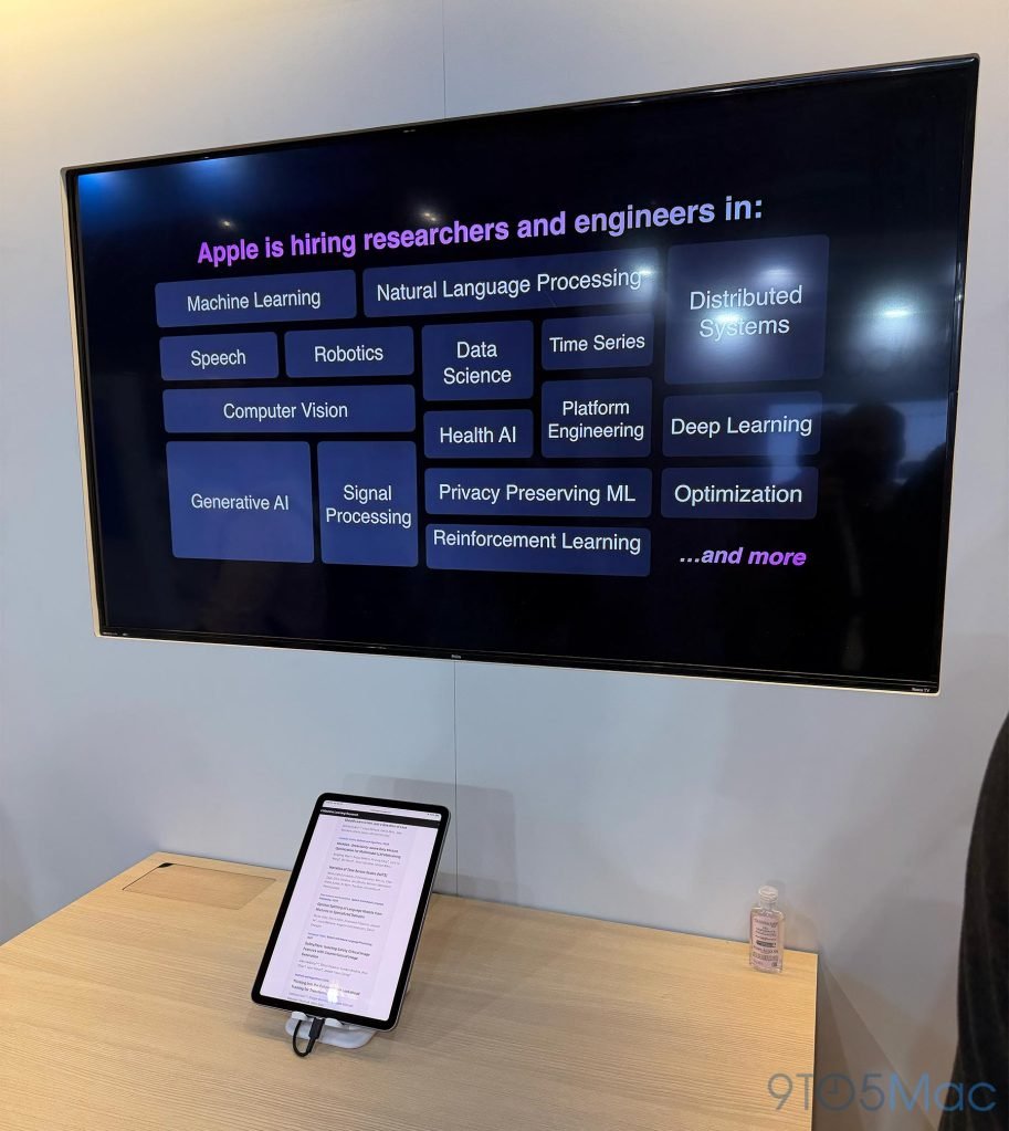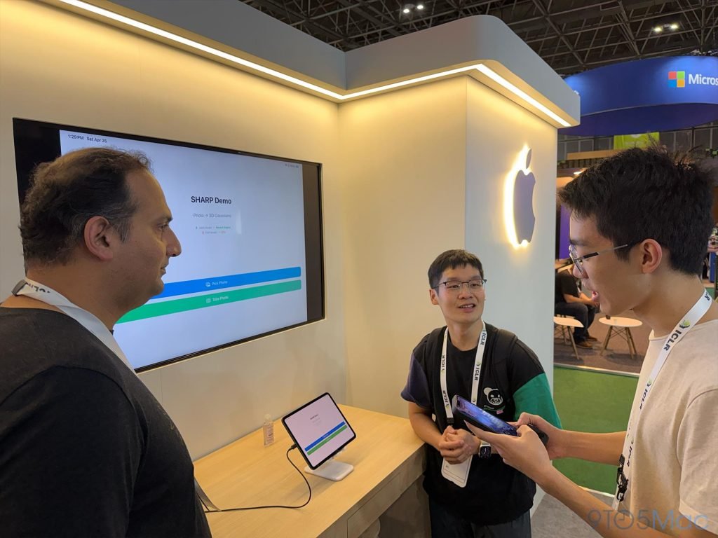 就像苹果前几天宣布的那样,他们在现场设立了展台,展示了名叫Apple Sharp的开源模型,能在短短几秒内把2D图像转换成3D空间;此外还展示了基于MLX框架的LLM推理,MLX是苹果开源的机器学习框架,专门针对Apple Silicon优化。