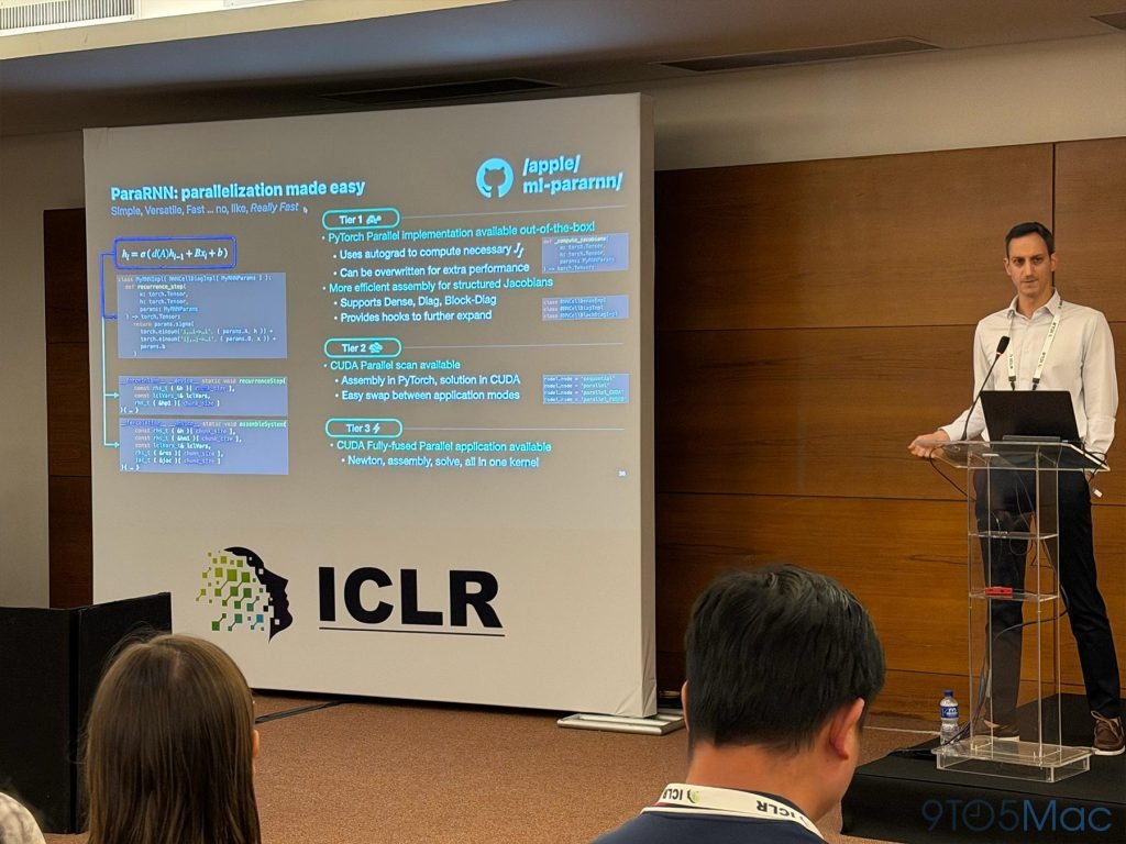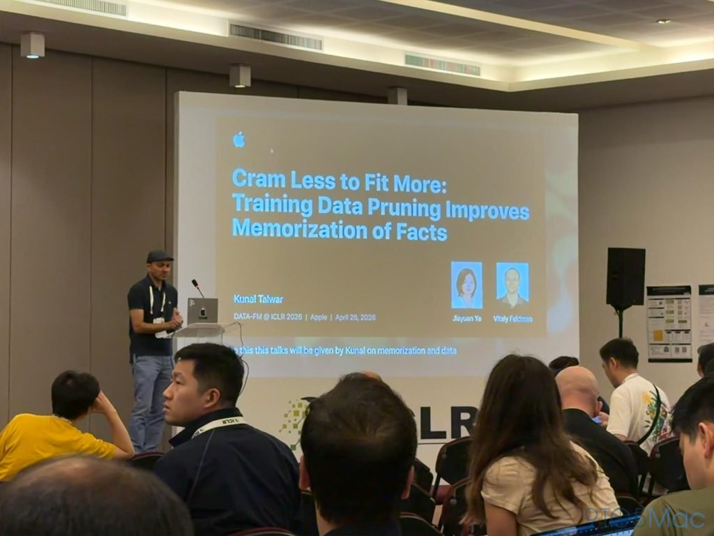 苹果还就部分入选论文做了现场报告和workshop。其中包括Federico Danieli主讲的《ParaRNN:解锁非线性RNN的大规模并行训练用于大语言模型》,以及Vitaly Feldman主讲的《少记多学:训练数据剪枝提升事实记忆能力》。
