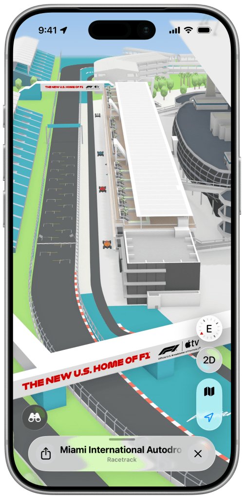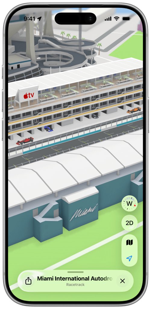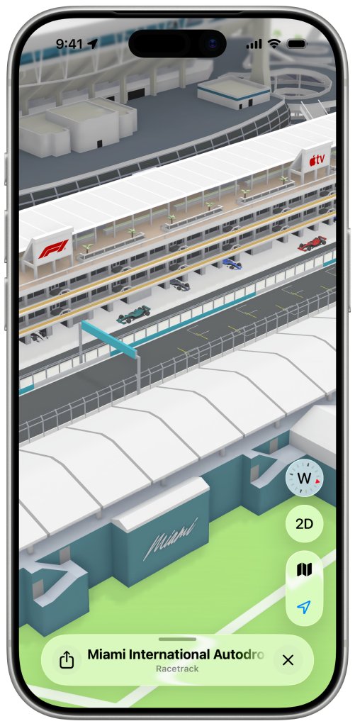 本赛季美国境内的首场F1大奖赛将于5月3日在迈阿密举行。就在比赛前夕,苹果推出了详细的苹果地图F1体验,包含沉浸式3D地标、赛道细节、导航信息等等。