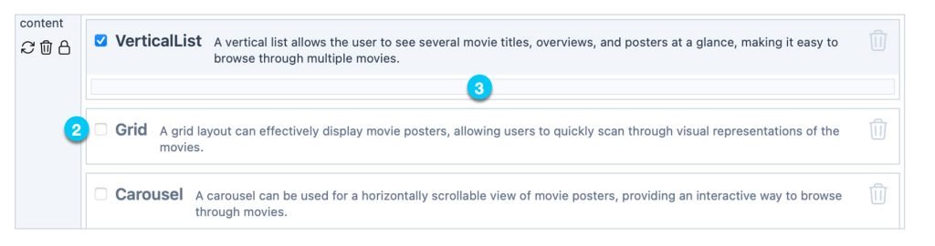 这种结构还能包含还没定义好的占位符,比如按钮文字、图片或者某块内容,同时支持多种 UI 方案。比如同样的内容可以是列表形式,也可以是网格布局。