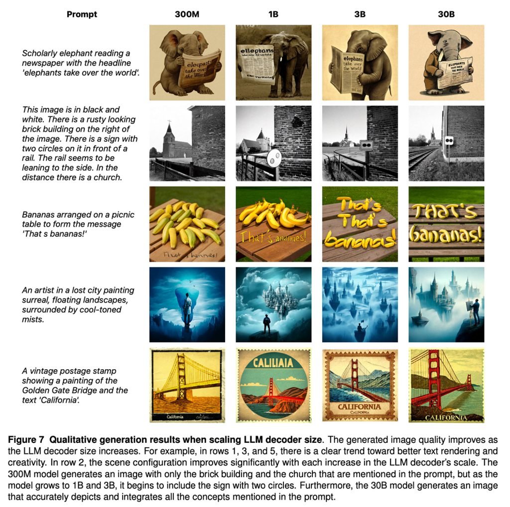 - 大语言模型解码器,接受文本token和/或连续图像嵌入,从联合词汇表中自回归预测下一个离散图像或文本token;
