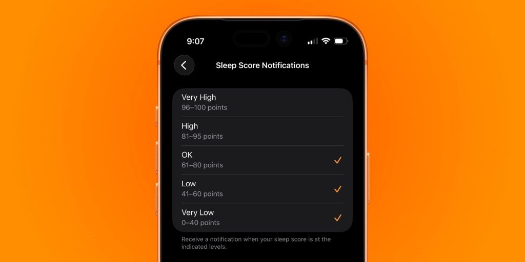 你可以在iPhone或Apple Watch上轻松设置只接收哪些区间的睡眠分数通知: