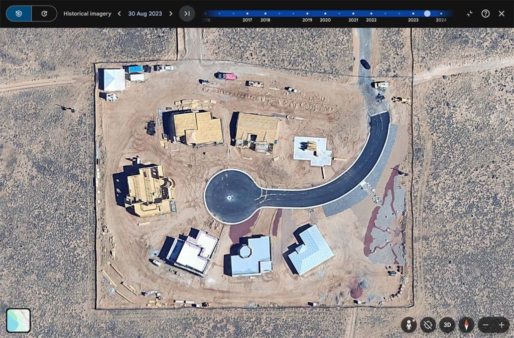虽然谷歌地图能查看该地最新卫星图像,但谷歌地球的”历史图像”功能可追溯至1984年。