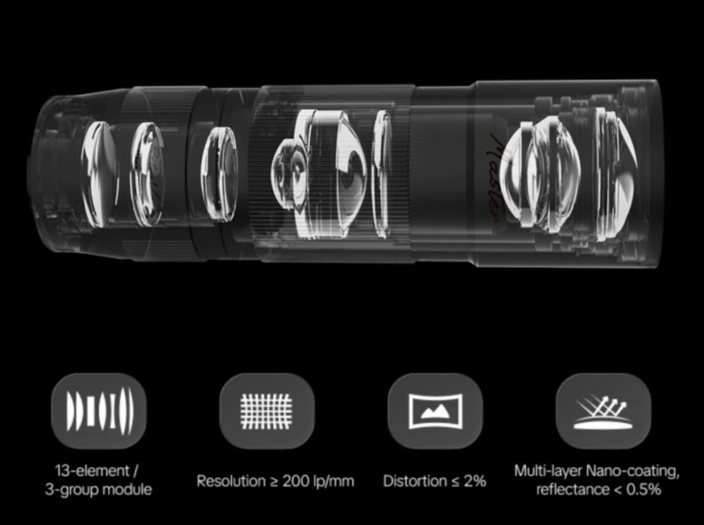 根据Kickstarter页面介绍,长焦增距镜(仅在较高档位包含)采用13片镜片、3组光学结构,专为iPhone f/2.8光圈优化,畸变仅2%。