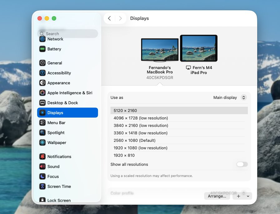 这是最简单、最划算的把 iPad 和 MacBook 搭配使用的方式。很多人花 250 到 1000 美元只为了买一个便携外接显示器,我觉得不如直接买一台 499 美元的 iPad Air,既能当便携显示器,还能当 iPad 用!我一直用 iPad Pro 在 Final Cut Pro 里做参考显示器,效果非常出色。