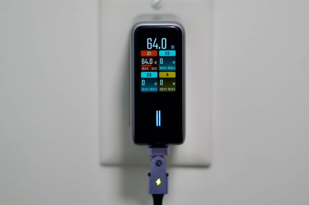 CUKTECH这款100W充电器目前只在亚马逊独家发售,价格59美元。包装里还附赠了一根不错的240W充电线,挺厚道。正如我前面说的,这款充电器值得推荐的原因有几点:首先它本身就是一个能同时充四个设备的强力充电头;其次,作为一个喜欢折腾科技的人,我特别享受它带来的实时数据和测试不同设备充电速度的乐趣。