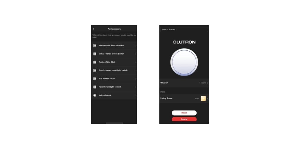 您可以将路创Aurora与多个配件配对,这意味着一个开关不必只控制一组灯。例如,我将我的设置为控制顶灯装置以及落地灯,两者都使用飞利浦Hue灯泡。