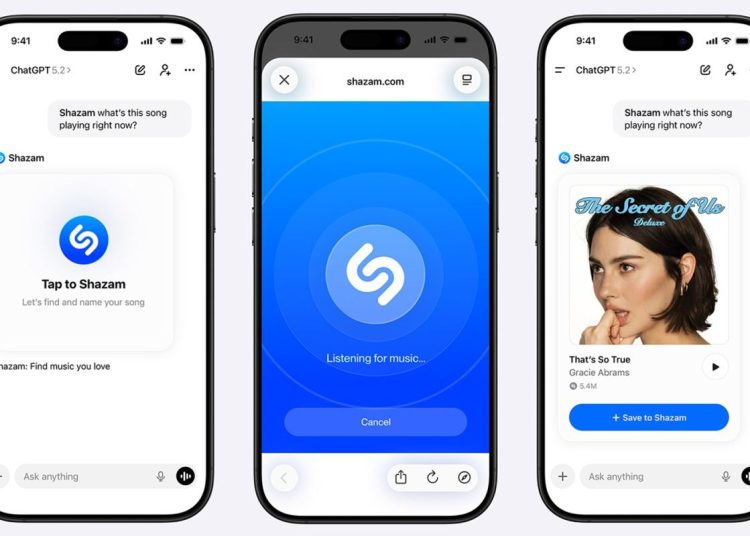Shazam for ChatGPT 现已全球推送,支持 ChatGPT 的 iOS、Android 和网页版使用。