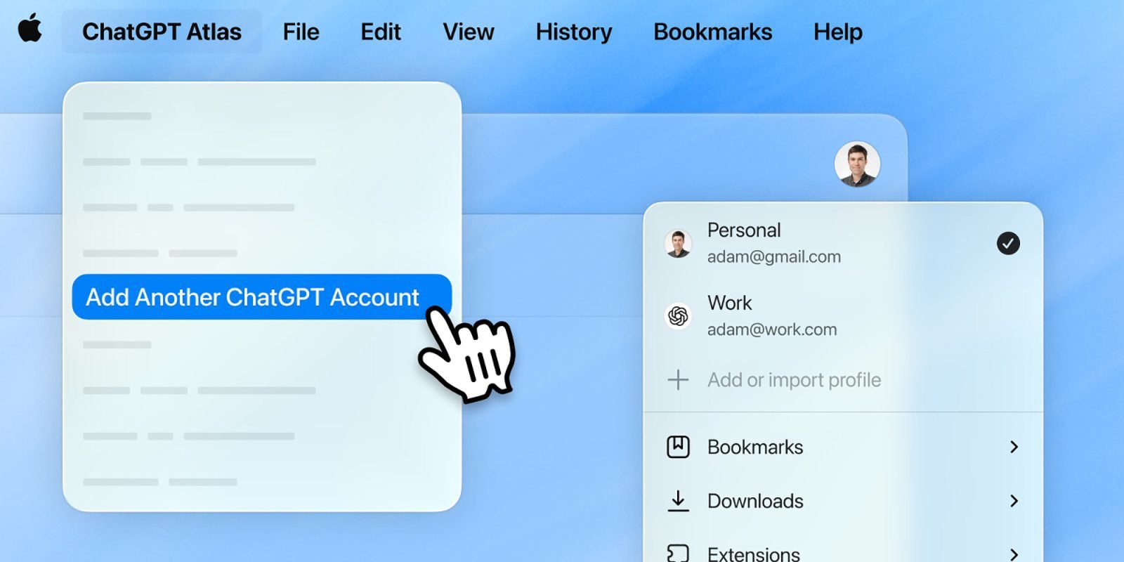 虽然之前已经支持了多身份档案(multi-profile)功能,但Atlas一直无法让用户在不同档案下分别登录多个ChatGPT账号。