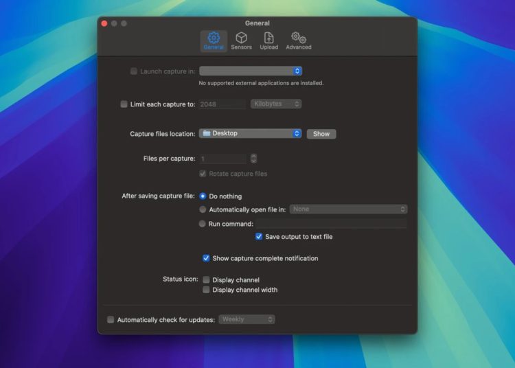 另一个亮点是与 Wireshark 的深度集成。捕获完成后,Airtool 2 可以一键启动 Wireshark,让你直接进入协议分析阶段,而无需额外步骤。这种流畅体验,让初学者也能快速上手高级任务。同时,软件内置自动数据帧切片、捕获文件大小限制和轮换功能,这些设计针对长时间监控特别友好,避免了文件过大导致的系统负担。