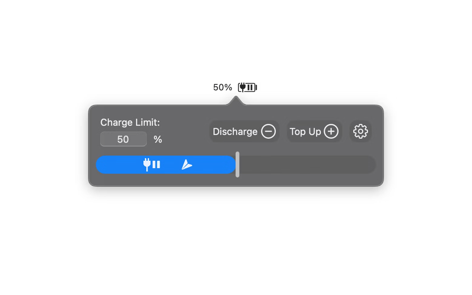 右键点击菜单栏控制:通过右键点击菜单栏图标,可快速暂停或开始充电,首次点击将充电限制设置为当前电量,再次点击则设置为100% 。