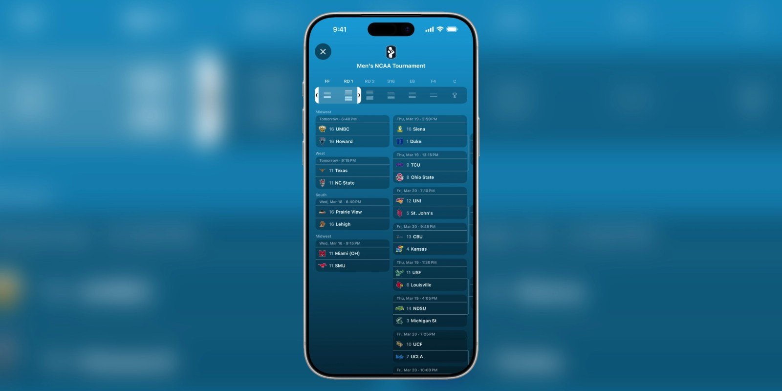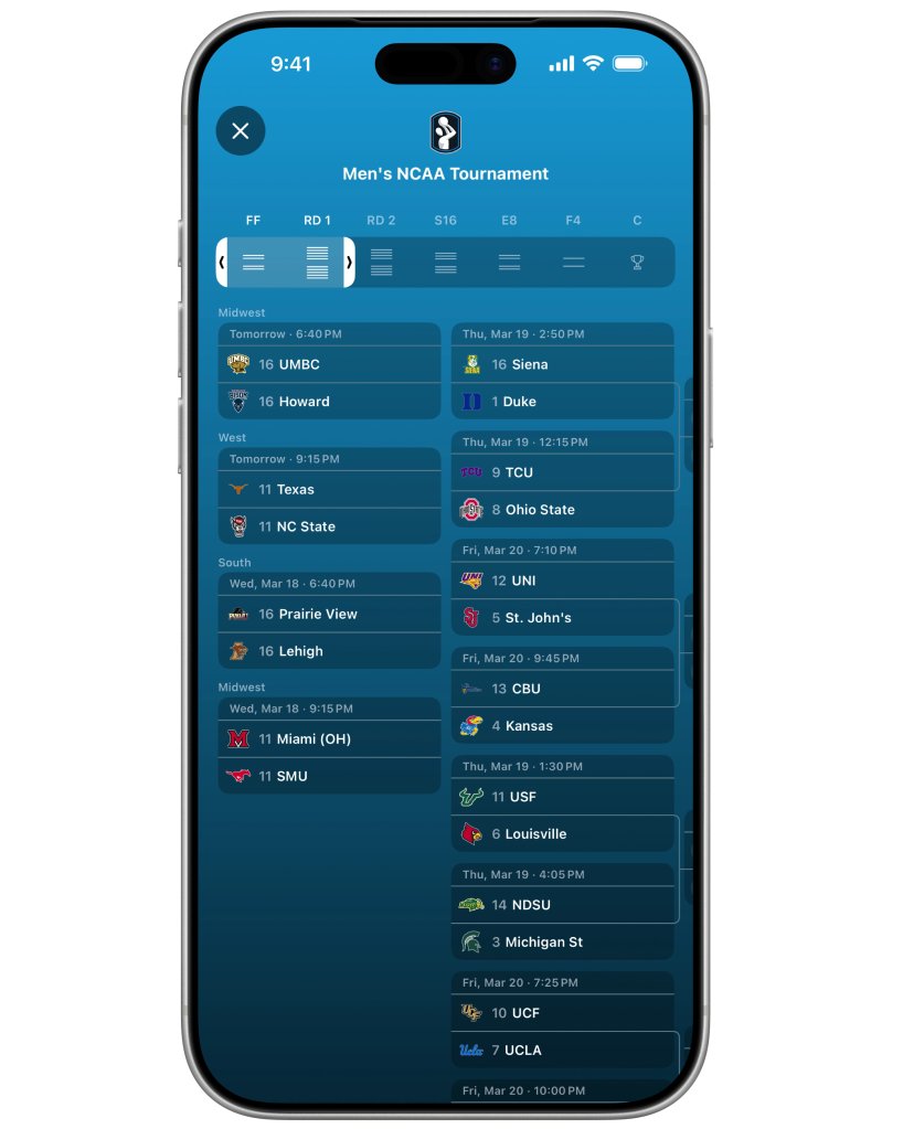 这就是 Apple Sports 里疯狂三月赛程表的样子: