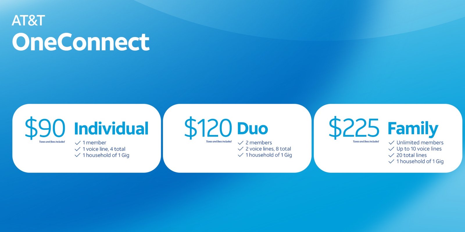 想了解完整详情和开通情况,可以去 att.com/oneconnect 查看。