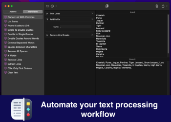 Text Workflow 2.5 for Mac 是一款功能强大的文本自动化工具,旨在通过简化的界面帮助用户快速处理和...