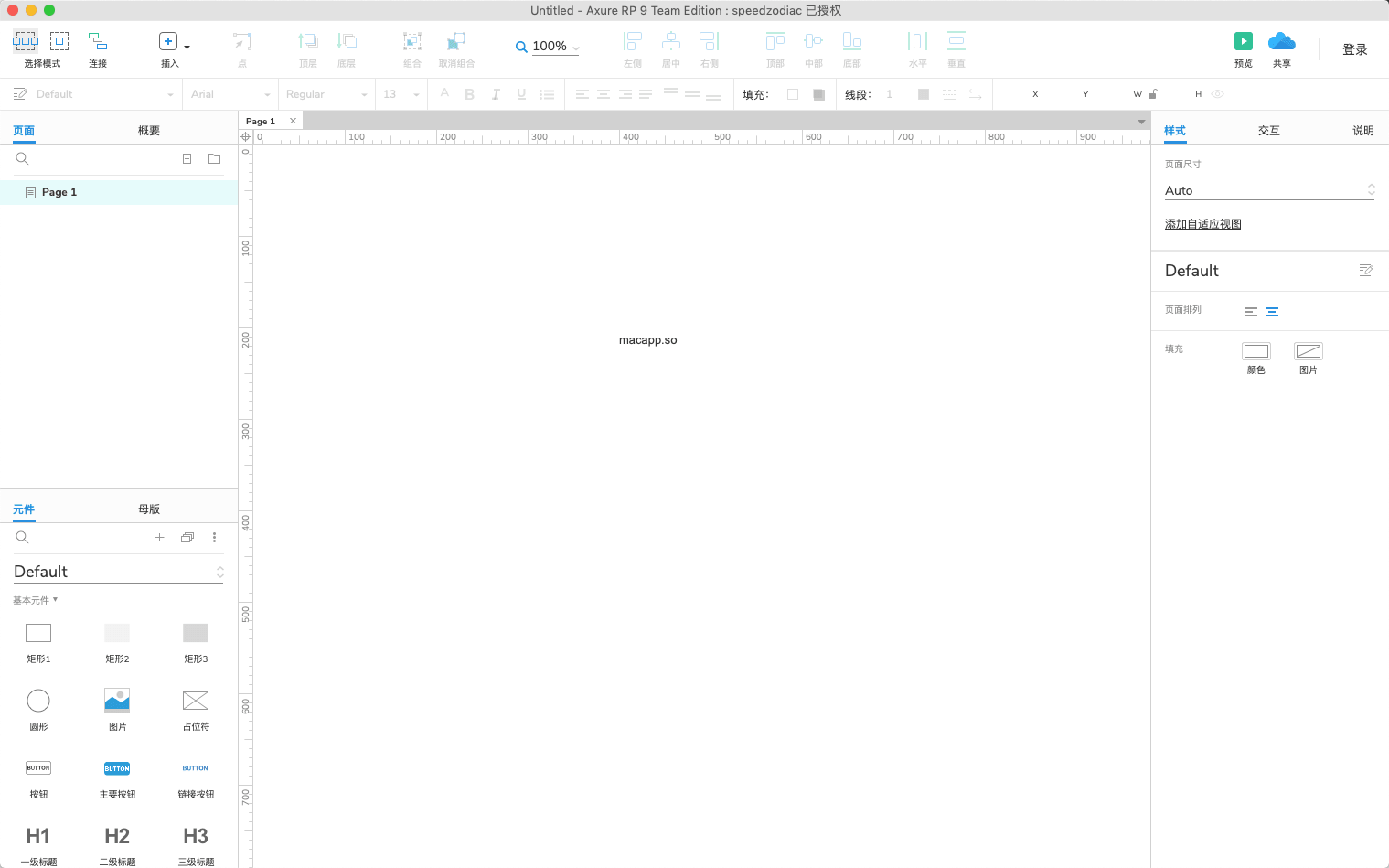 界面布局的优化是本次升级的亮点之一。Axure RP 10采用了更加简洁大气的UI设计,工具栏区域划分更为明确,功能按钮的排布更加符合设计工作流的内在逻辑。特别值得一提的是,发布到Axure Cloud的”Share”功能按钮被设计得更加突出,方便团队成员快速分享设计成果和获取反馈。整体界面风格与macOS系统美学完美融合,既保持了Axure系列的专业感,又符合苹果用户对界面美观度的期待。