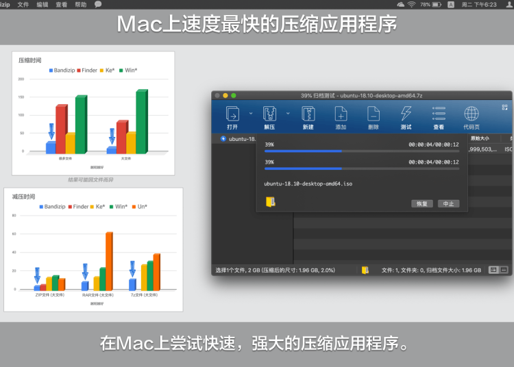 Bandizip for Mac 支持包括 ZIP、7Z、RAR、ALZ、EGG 等在内的超过 30 种常见压缩格式的解压,并支持 ZIP、7Z、TAR 等格式的压缩。软件提供快速的压缩与解压速度,尤其在处理大型文件时表现优异。其简洁的界面设计和低资源占用,使其成为 Mac 用户处理压缩文件的便捷选择。