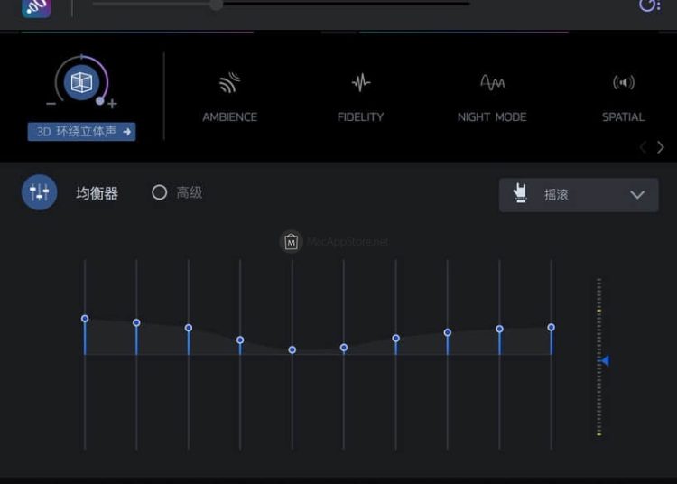 – 强度滑块:提供对音频输出的全局控制,允许用户快速调整整体低音和高音平衡