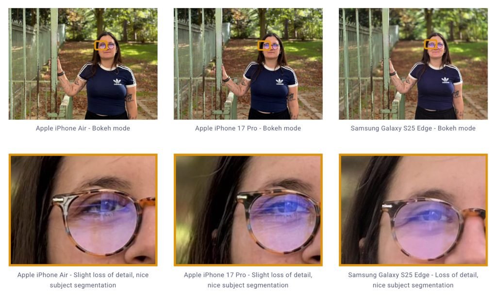 虚化效果及其主体分割在测试中表现尤为出色,尤其是与三星Galaxy S25 Edge相比。