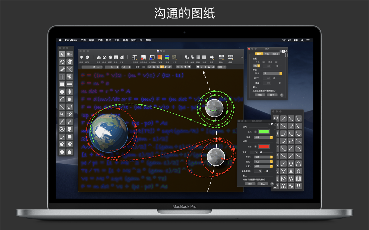 EazyDraw 作为一款专业的矢量图形工具,其技术基础在于使用数学方程来定义线条和形状。这使得通过 EazyDraw 创建的图形可以无限放大而不损失任何清晰度,保证了打印和高质量显示输出的最佳效果。