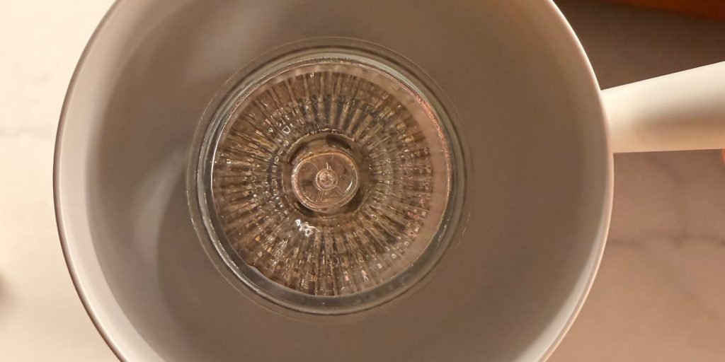 如果你之前没用过蜡烛加热器,原理其实非常简单。不需要点燃烛芯,只需把你最爱的罐装蜡烛放在聚焦的卤素灯泡下方。灯泡发出的热量从上往下慢慢融化蜡面,释放香味,却没有任何烟雾或明火。