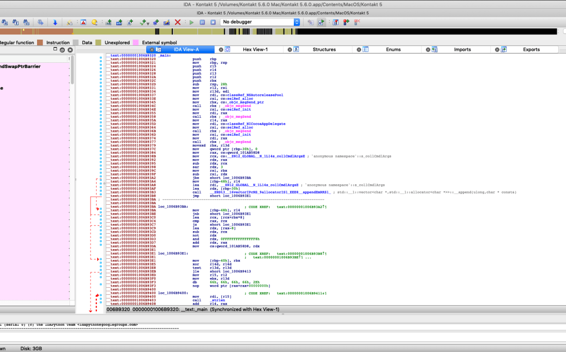 在实际使用中,IDA Pro 9.2在Mac平台上的性能表现令人印象深刻。处理大型二进制文件时(如超过100MB的iOS应用),IDA Pro 9.2相比之前版本显示出更好的内存管理和更快的分析速度。图形视图的渲染性能也有所改善,使得导航复杂控制流图更加流畅。