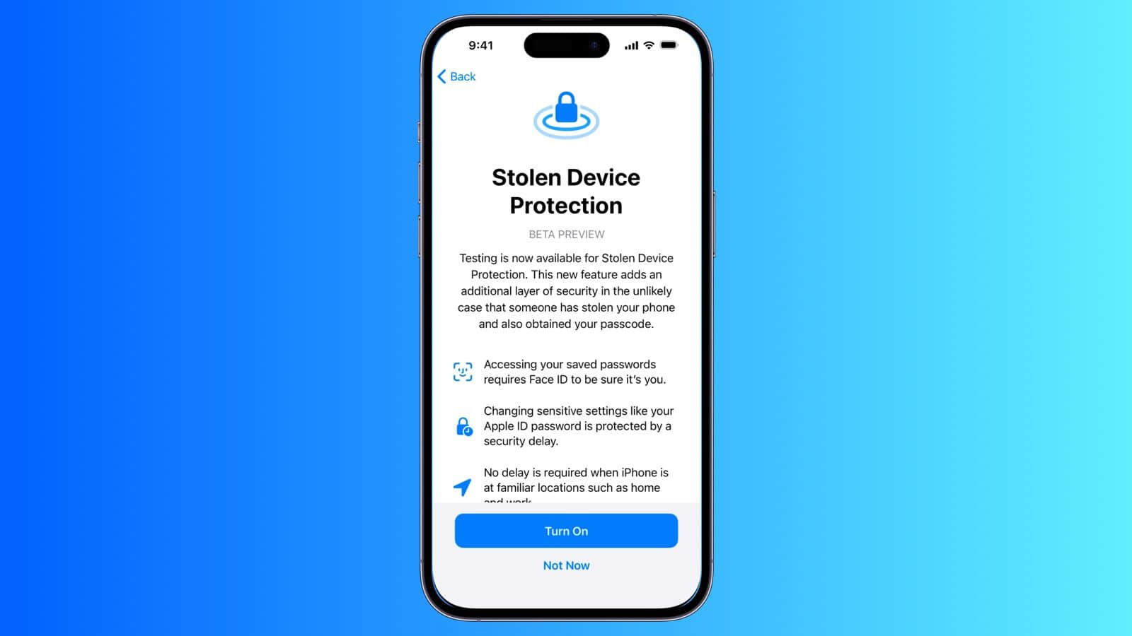 对于特别敏感的操作,包括更改与 iPhone 关联的 Apple ID 帐户的密码,该功能在生物识别身份验证的基础上增加了安全延迟。在这些情况下,用户必须使用 Face ID 或 Touch ID 进行身份验证,等待一小时,然后再次使用 Face ID 或 Touch ID 进行身份验证。不过,苹果表示,当 iPhone 位于熟悉的地点(例如家里或工作场所)时,不会出现延迟。