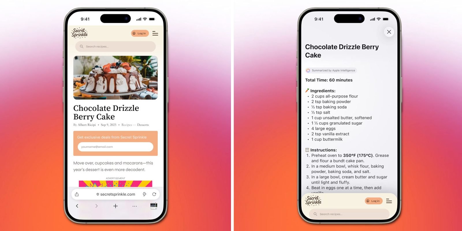 该公司发布了一段视频演示:将一个内容繁杂的食谱网页,通过摇晃 iPhone,转换成清晰的要点列表,列出食材和步骤。