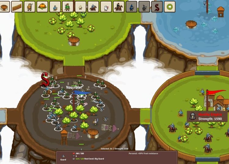 • 单位升级系统:士兵打怪积累XP,进化成精英,还能骑乘巨兽,形成“弓箭手上龙背”的奇葩组合。