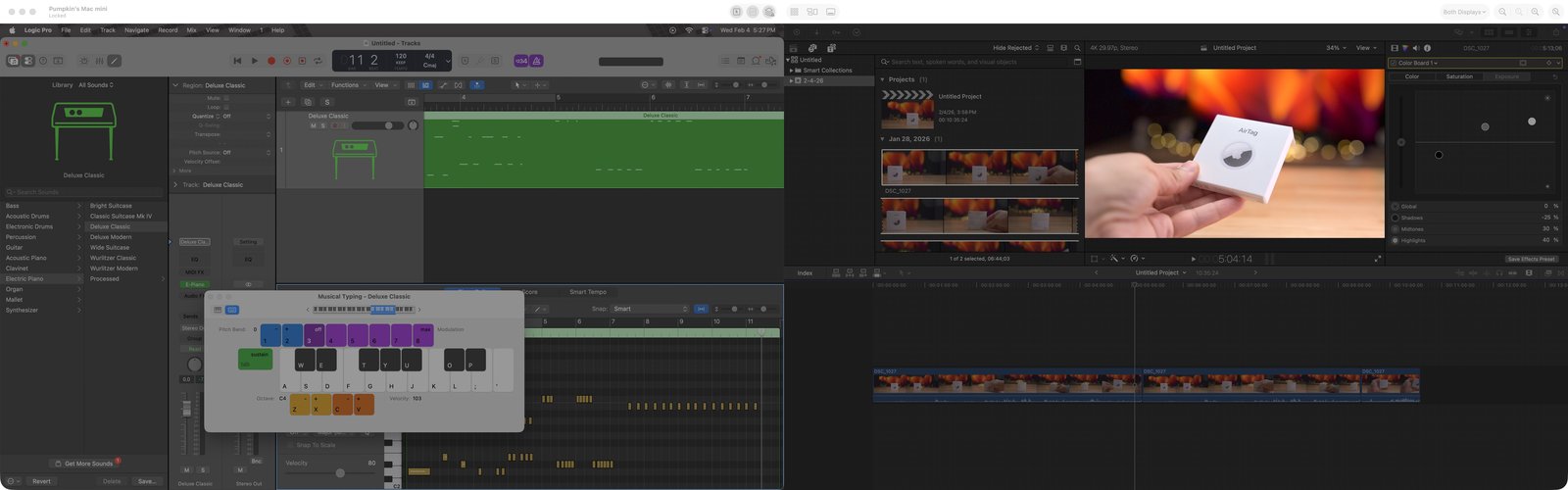 Logic Pro与Final Cut Pro并排运行在双虚拟显示器中