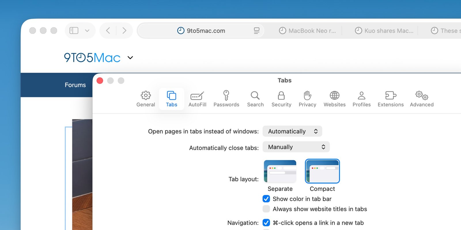 去年秋天 macOS Tahoe 和 iPadOS 26 发布的时候,苹果把 Safari 里一个可选的布局方式给去掉了,那就是紧凑型标签栏。现在,这个功能在 macOS 26.4 和 iPadOS 26.4 里又回来了。