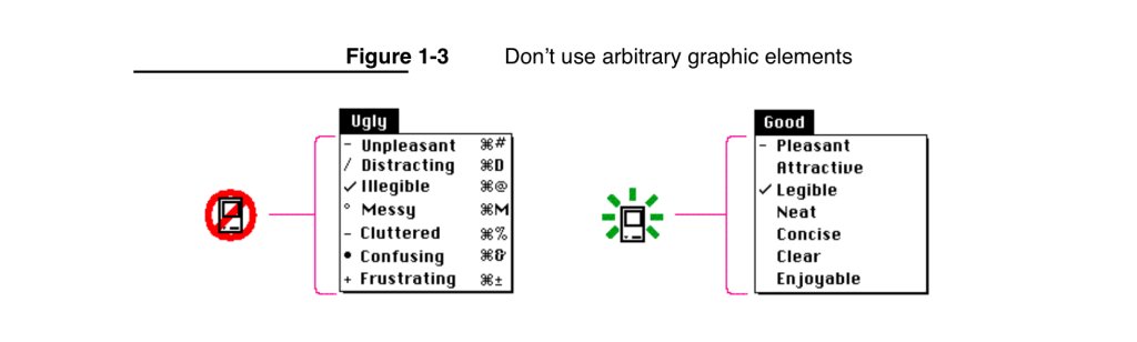 软件工程师 Nikita Prokopov 现在提请注意菜单中使用的图标,并指出它们几乎完全违背了苹果在1992年发布的《Macintosh人机界面指南》中反对的做法……