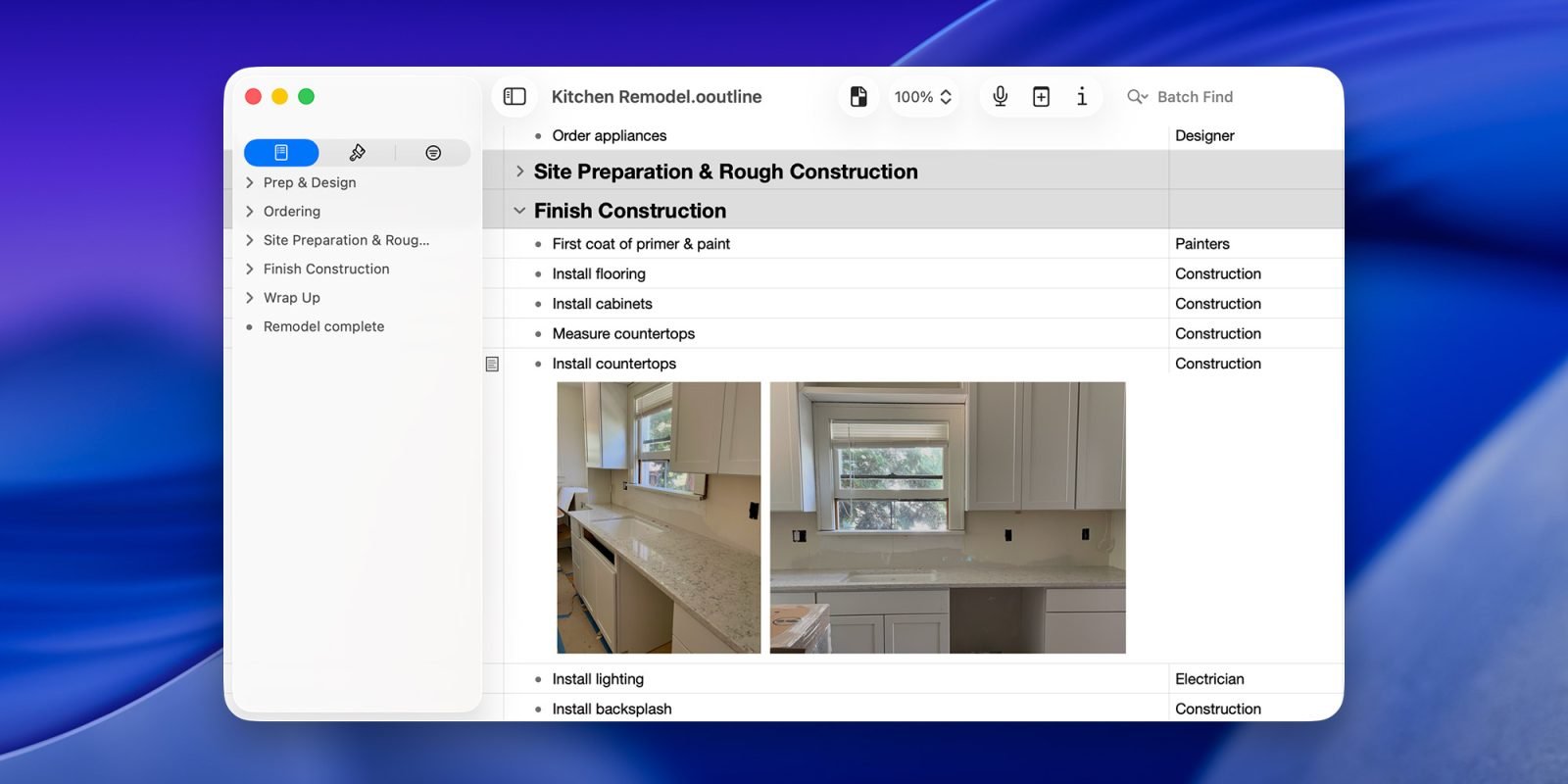 OmniOutliner 6全面兼容AppleScript,并包含多项贴心改进:增强的深色模式、Mac端多窗口协同(支持同项目拖拽操作)、可共享自定义样式、可调整大小的行内附件、高级筛选器等。