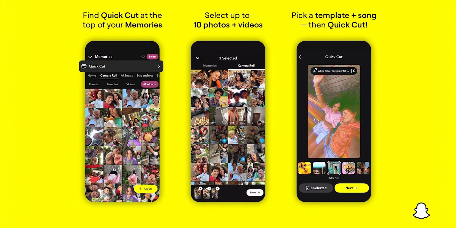 无论是记录日常点滴,还是制作下一个 Spotlight 帖子,Quick Cut 都让用户在 Snapchat 内轻松创作。