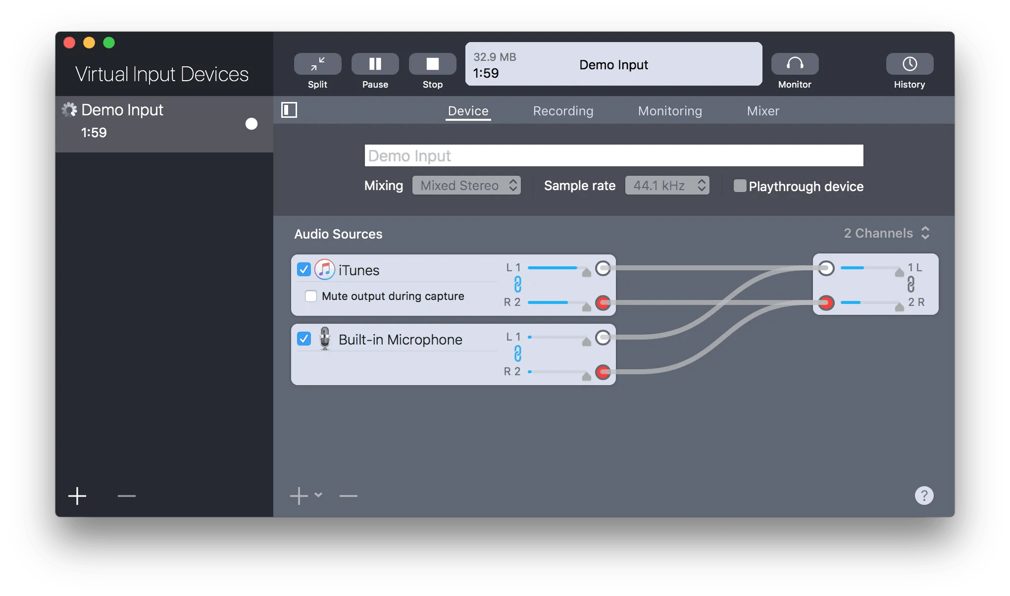 Sound Siphon的核心价值在于其灵活的音频路由能力。它可以捕获Mac系统的整个音频输出、单个特定应用程序的音频,或来自外部设备(如麦克风、音乐播放器)的物理输入信号。捕获的音频流可以被发送到任何接受音频输入的应用程序中,例如OBS Studio、QuickTime Player、Audacity、Zoom或Skype。