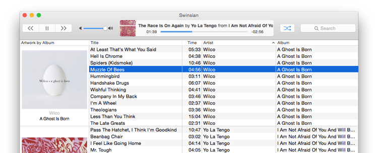 Swinsian 3.0延续了该系列简洁高效的设计哲学,同时通过精心调整的界面细节提升了整体用户体验。软件提供了多种音乐浏览方式,包括传统的列表视图、艺术网格和列浏览器,满足不同用户偏好和使用场景。新增的”迷你窗口”模式进一步简化了界面,只保留最基本的播放控制,适合那些希望在专注工作时保持音乐播放但又不想被复杂界面干扰的用户。