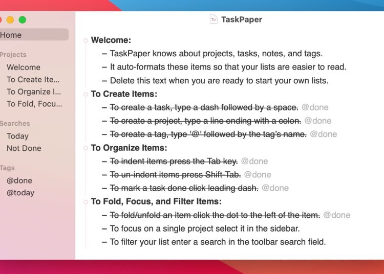TaskPaper 这款软件的基本面貌